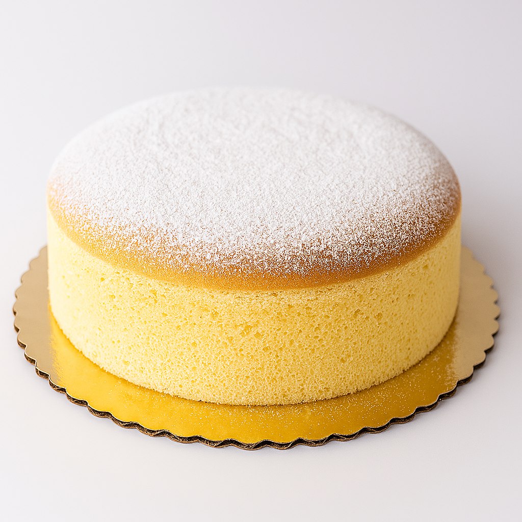Cheesecake japonés esponjoso con un toque de limón y azúcar pulverizada por encima.