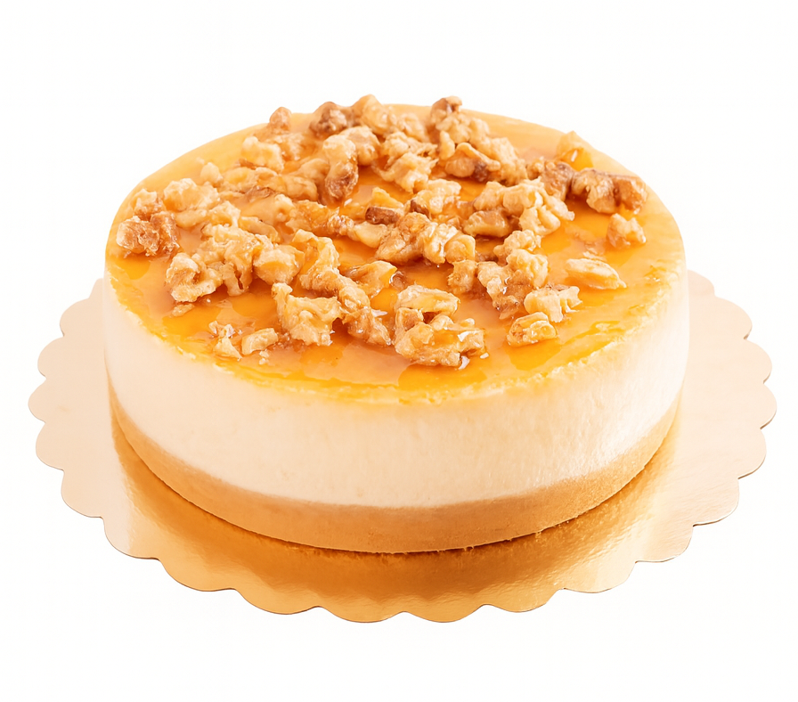 Una deliciosa combinación de queso crema y yogurt griego, cubierta con miel de chinola y nueces tostadas. Con menos grasa, alto en proteínas, bajo en azúcar y una textura más ligera.